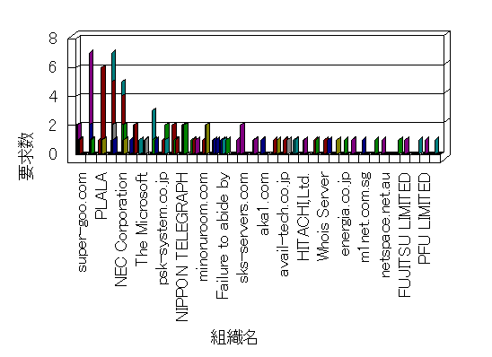 組織ユーザーにインターネット接続を提供する、商用または非営利団体、学術・行政機関などの、インターネット ドメイン で識別される団体や組織です。Microsoft Site Server Analysis は同じ組織に登録されたすべてのドメインを 1 つの組織としてグループ化します。ドメインがデータベースで使用できない場合は、1 つのインターネット ドメインが 1 つの組織を識別するのに使用されます。