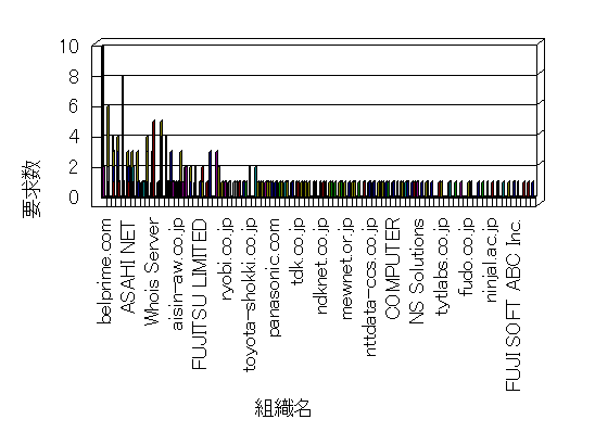 参照組織のサイトには、このサイトにリンクするページがあります。グラフでは、このサイトへのアクセス数に基づいた、上位 10 組織を示します。
