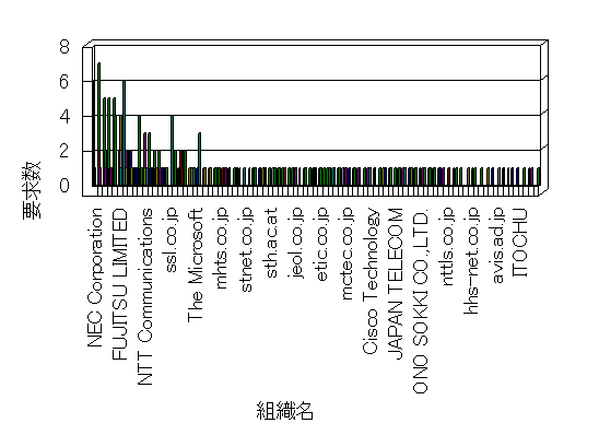 組織ユーザーにインターネット接続を提供する、商用または非営利団体、学術・行政機関などの、インターネット ドメイン で識別される団体や組織です。Microsoft Site Server Analysis は同じ組織に登録されたすべてのドメインを 1 つの組織としてグループ化します。ドメインがデータベースで使用できない場合は、1 つのインターネット ドメインが 1 つの組織を識別するのに使用されます。