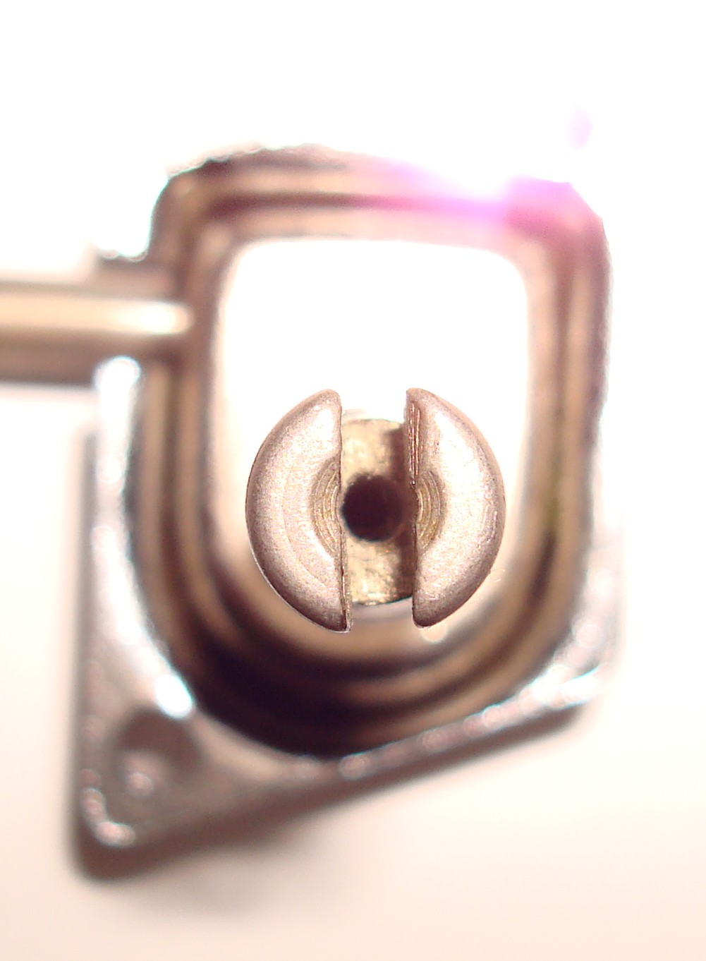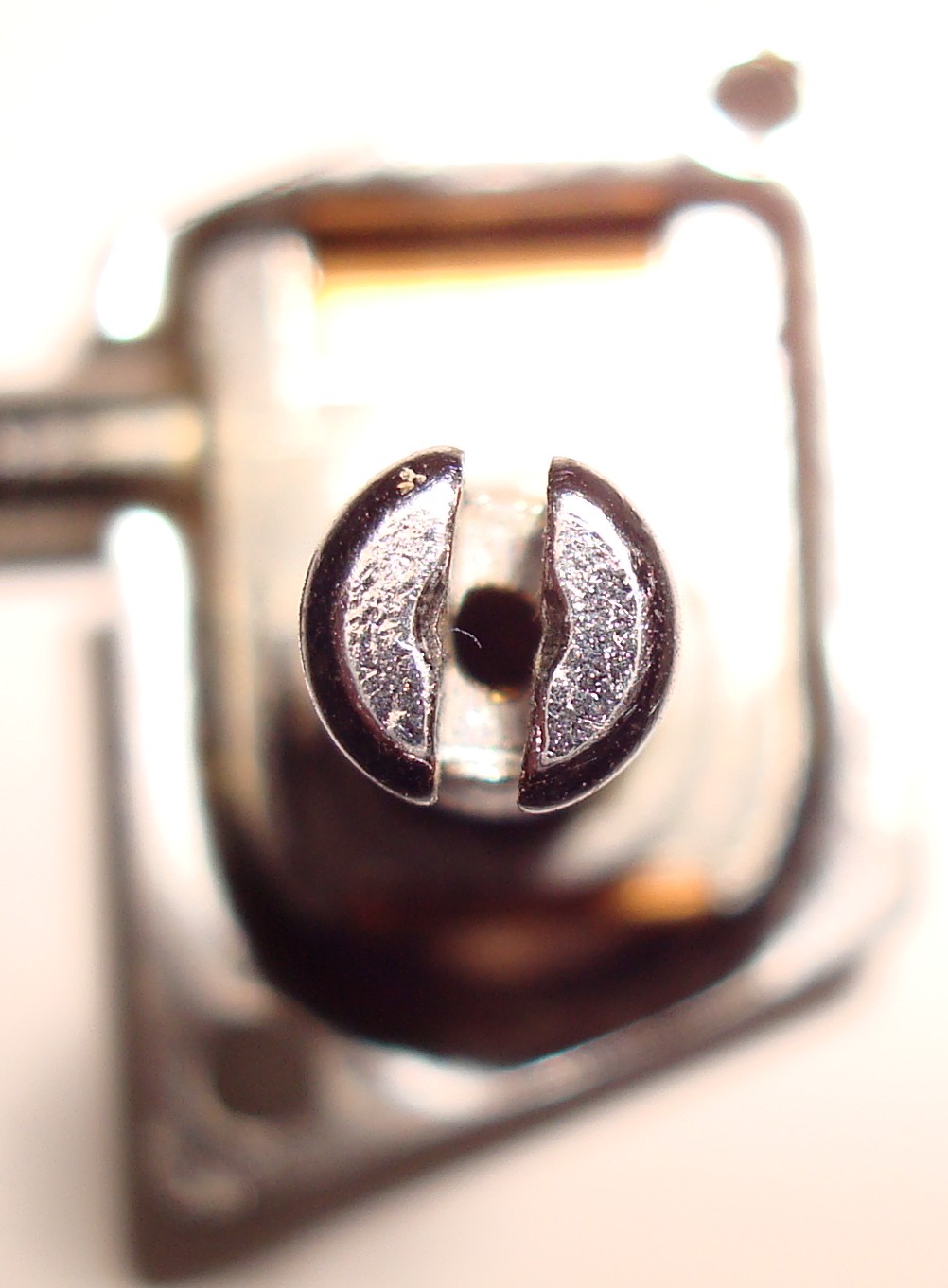• 1976年前期は、穴径が切り込み溝の幅と同程度だか、切り込み幅も一番大きいので穴径も大きくなっている。また、写真では判らないが、切り込みの深さも一番深い。シャフト頂点の穴に大きく面取りがある。