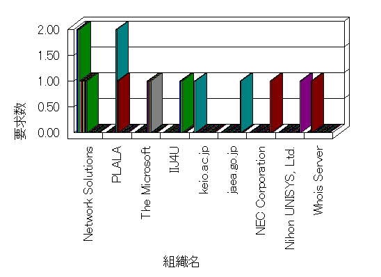 組織ユーザーにインターネット接続を提供する、商用または非営利団体、学術・行政機関などの、インターネット ドメイン で識別される団体や組織です。Microsoft Site Server Analysis は同じ組織に登録されたすべてのドメインを 1 つの組織としてグループ化します。ドメインがデータベースで使用できない場合は、1 つのインターネット ドメインが 1 つの組織を識別するのに使用されます。